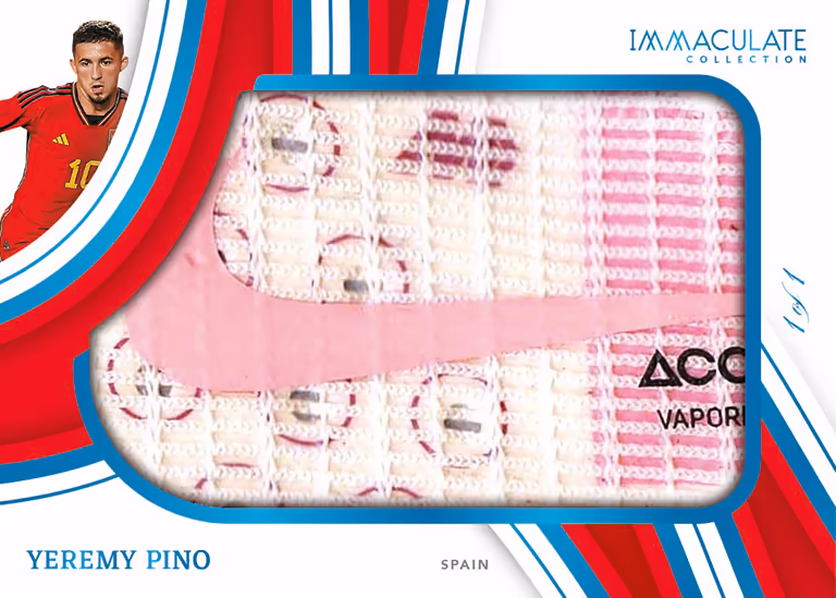 Collectors can look forward to the four parallel variants typical of the Immaculate Soccer collections (Silver – /40, Sapphire – /25, Gold – /10 and Platinum – 1/1), complemented by the Ruby Parallels, numbered to /19 and available exclusively in the Hobby International Boxes.