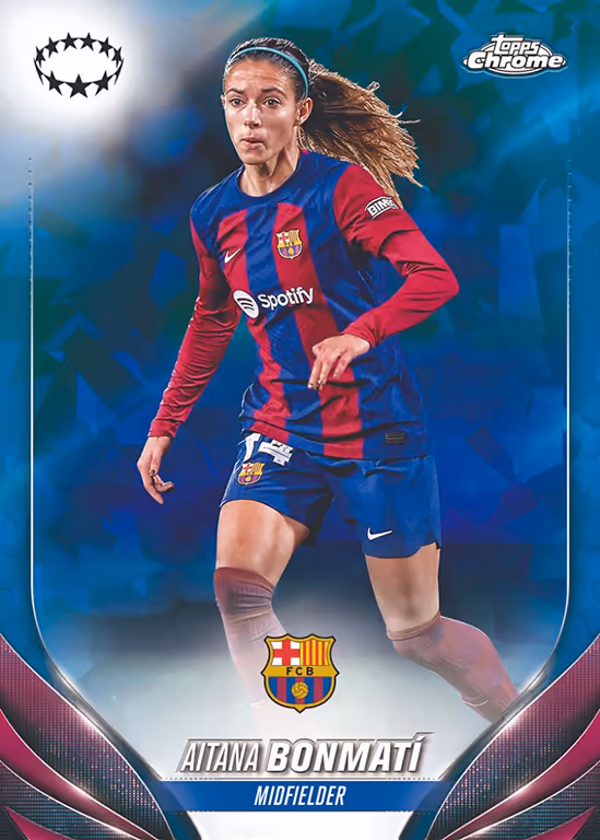 The 2023-24 TOPPS Chrome Sapphire Edition UEFA Women’s Champions League Soccer collection adopts the 100-card Base Set from the main collection and complements it with a 10-card subset featuring Image Variations.