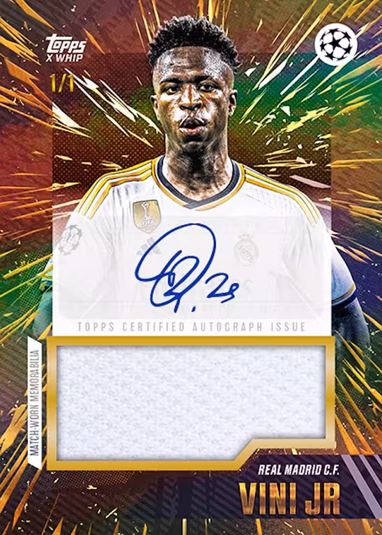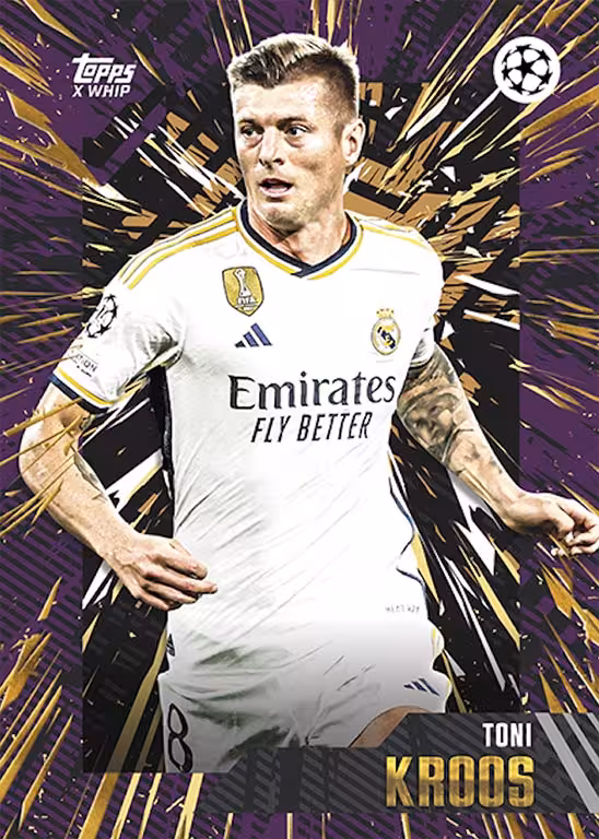 Topps geht mit der GOLD Reihe in die dritte Saison und lässt mit WHIP erneut bekannte Künstler die Gestaltung der Cards übernehmen. Erstmals können Sammler in den Boxen der 2023-24 TOPPS Gold UEFA Club Competitions Soccer Cards in dieser Saison auch Relic und Autograph Relic Cards finden.