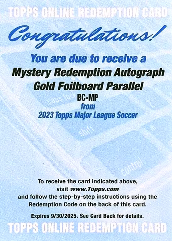 Die Bilder der 2023 Topps Major League Soccer Kollektion stammen aus den Pre-Release Informationen des Herstellers. Die final ausgelieferten Cards können im Design davon abweichen.