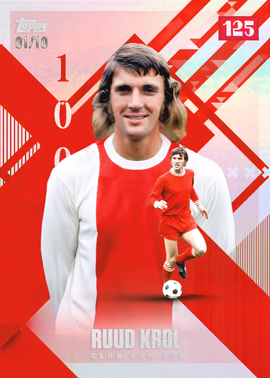 The Topps AFC Ajax 125th Anniversary Boxes will be available via Topps’ European online shops and through specialist sports card retailers.