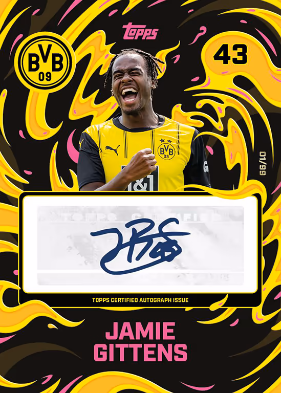 The highlight of the Topps Dortmund Team Set is the My Club Autograph Relic Cards, featuring embedded jersey pieces and a signature, which exist as One-of-One Cards per player and only once across the entire collection.