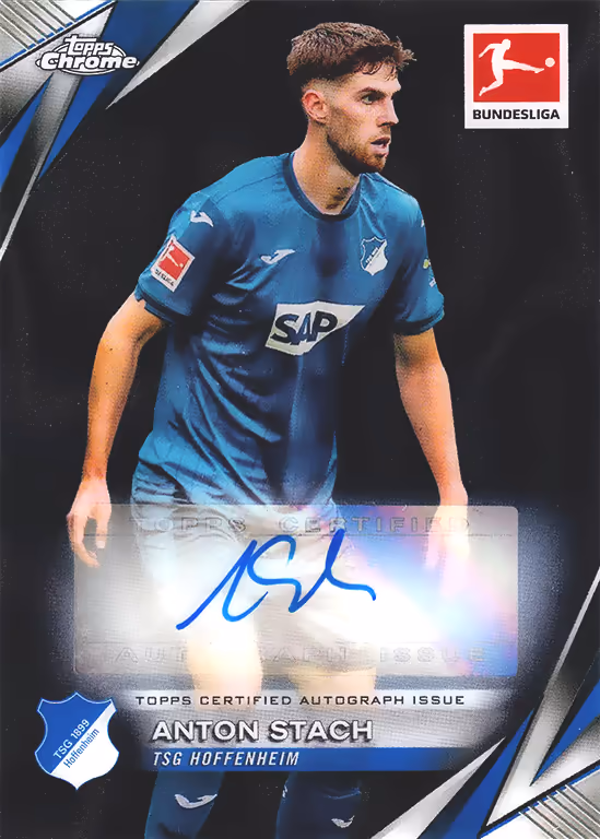 Just about two months after the season finale, the Chrome Cards for the German Bundesliga reach collectors. As in previous years, fans can look forward to pulling one Autograph Card of the league’s stars per 2024-25 TOPPS Chrome Bundesliga Soccer Cards Hobby Box.