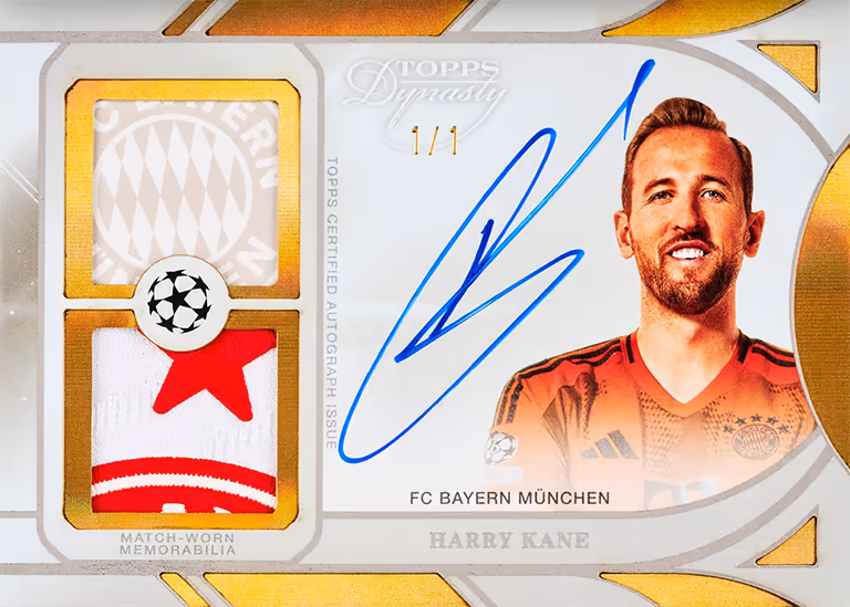 For the second time, the 2024-25 TOPPS Dynasty UEFA Champions League Soccer Cards mark the most premium Topps collection in the soccer segment. Soccer fans among collectors can look forward to elegant on-card autograph cards and cards with match-worn relics.