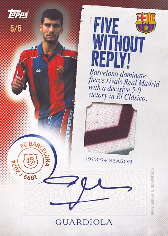 Pep Guardiola (Five without Reply Autograph Relics · PG-PG)