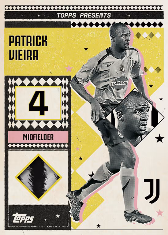 The collection is expanded by three Insert categories: the Rainbow Flick Inserts (1 per Case) and Pathway Inserts (1 per 2 Cases), which are already familiar from other Team Sets released this season, and the exclusive and unique Le Zebre Inserts for the Juventus Team Set, inspired by the club’s classic black-and-white kit design.