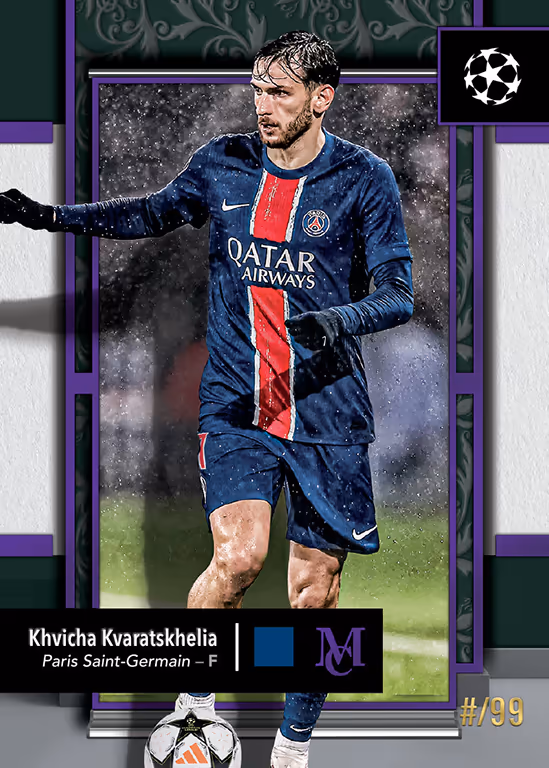 Topps’ Museum Collection cards return for another season and broaden their scope from a purely Champions League line to a UEFA Club Competitions collection, which also includes players from teams in the two additional men’s club tournaments, the UEFA Europa League and the UEFA Conference League.
