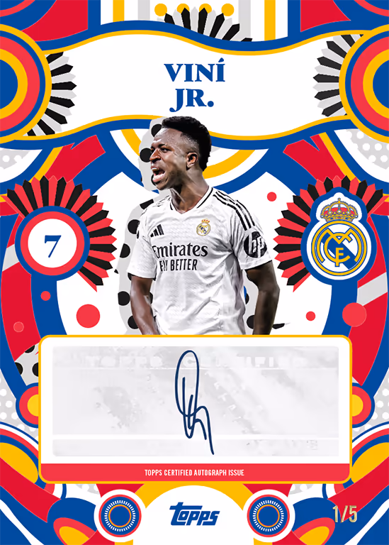 Spain’s record champions are celebrating their Team Set debut at Topps. For fans of Los Blancos, the boxes of the 2024-25 TOPPS Real Madrid C.F. Official Team Set Soccer Cards collection include Autograph, Relic or Autograph Relic Cards featuring current stars and club legends.