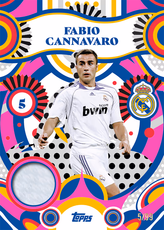 Three Insert categories accompany the Base Cards: the Rainbow Flick Inserts (1 per Case) and Pathway Inserts (1 per 2 Cases), already familiar from other Team Sets released this season, and the exclusive and unique Real Madrid Masters Inserts, inspired across sports by the ATP clay court Masters tennis tournament taking place in the Spanish capital at the time of the product’s release.