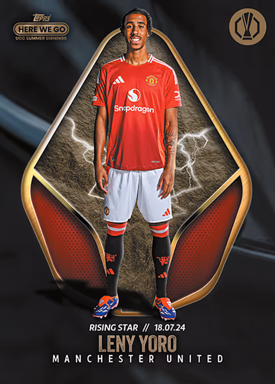 The 2024-25 TOPPS Summer Signings Here We Go by Fabrizio Romano UEFA Club Competitions Soccer Cards present collectors with the most important new signings of the 2024 summer transfer window from the four European club competitions (UEFA Champions League, UEFA Europa League, UEFA Conference League & UEFA Women’s Champions League).