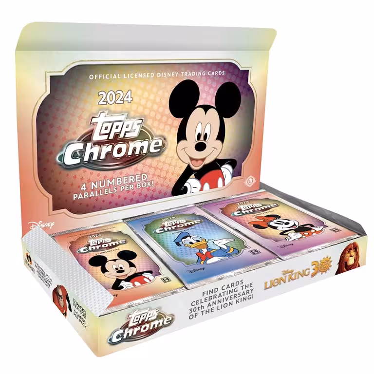 Nach dem großen Erfolg der Disney 100 Kollektion im Vorjahr, bringt Topps auch in diesem Jahr Chrome Cards mit den beliebten Disney Charakteren auf kultigen Chrome Cards an den Start.