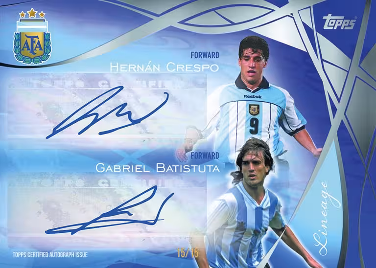 Mit dem Lineage Set zum englischen Traditionsklub Liverpool FC startete Topps im letzten Jahr eine neue High-End Sports Cards Reihe. Diese findet in diesem Jahr Fortsetzung mit einem Set zum amtierenden Weltmeister aus Argentinien, das mit wertige Autograph, Relic und Autograph Relic Cards bei den Sammlern punkten will.