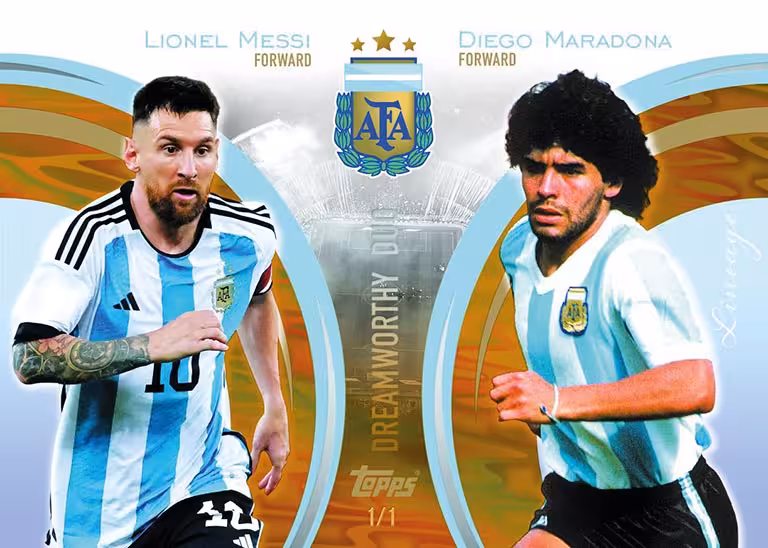 Erweitert wird die Kollektion durch zwei Insert Kategorien. Lenticular Lineage, Duo Cards, die mit einem Lenticular Effekt zwei Spieler auf einer Card vereinen und Dreamworthy Duo, einer Card mit zwei der größten Spieler, die der argentinische Fußball hervorgebracht hat: Lionel Messi und Diego Maradona.