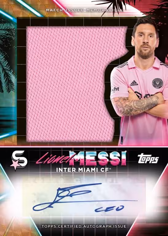 Ein weiteres Highlight der Kollektion sind die Relic Cards, mit in die Karte eingearbeiteten Trikotstücken. Diese Memorabilia-Cards können nicht aus allen Produkten, sondern nur aus den Value bzw. Blaster Boxen dieser Topps MLS Superstars 2024 Kollektion gezogen werden. Einzige Ausnahme bildet die World’s Greatest Jumbo Relic Card mit Lionel Messi, die man aus allen Produkten ziehen kann.
