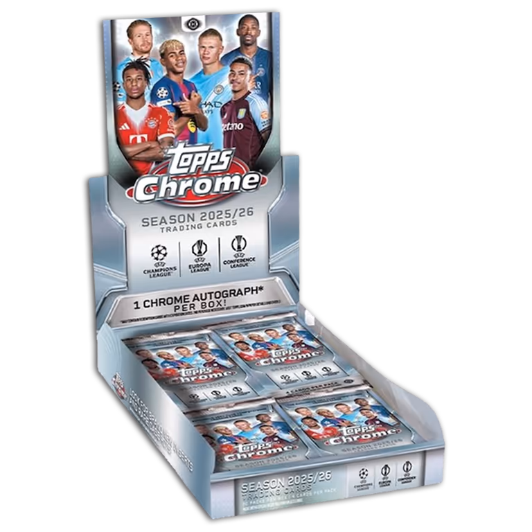 The 2025-26 TOPPS Chrome UEFA Club Competitions Soccer Cards are Topps’ most extensive release to date dedicated to the European club competitions. Collectors can expect a significantly broader range of products than in previous years.