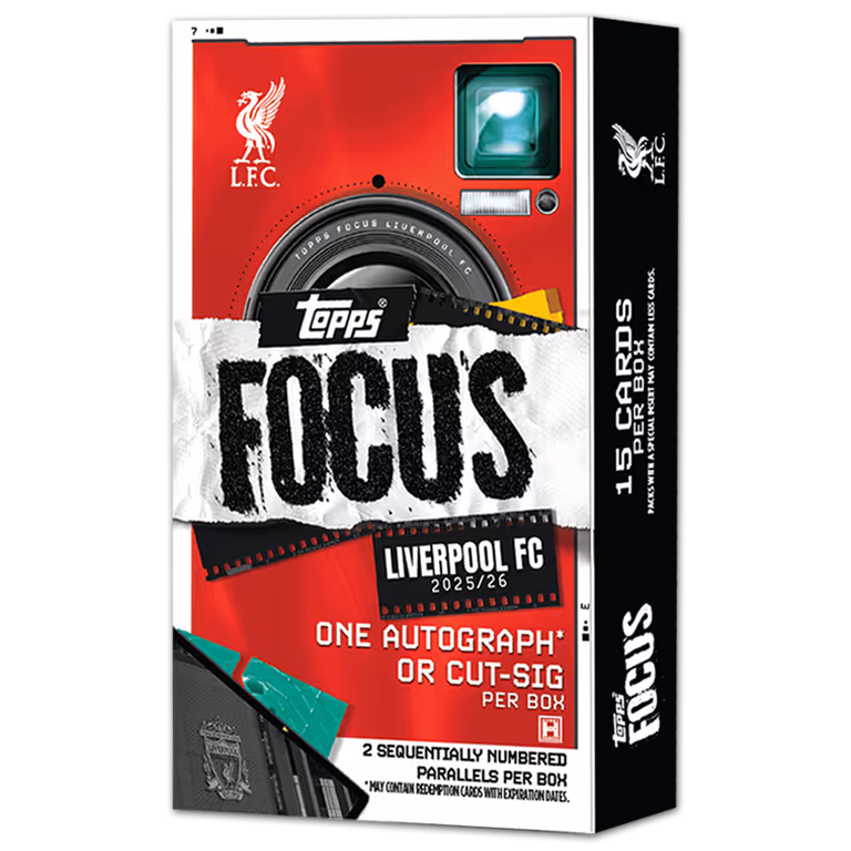The latest Focus collection from Topps is dedicated to the English team from Anfield Road. Collectors and fans of the Reds can look forward to 1 autograph card and 2 numbered parallel cards per 2025-26 TOPPS Focus Liverpool FC Soccer Cards box.