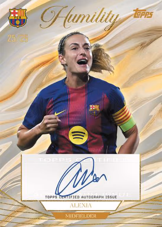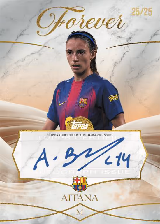 A total of 3 cards enclosed in magnetic holders await buyers of each 2025-26 TOPPS Forever FC Barcelona Soccer Cards box, all of them autograph or autograph relic cards. They present both current stars from the men’s and women’s teams as well as some of the club’s greatest legends, who have played a decisive role in shaping the proud history of FC Barcelona.