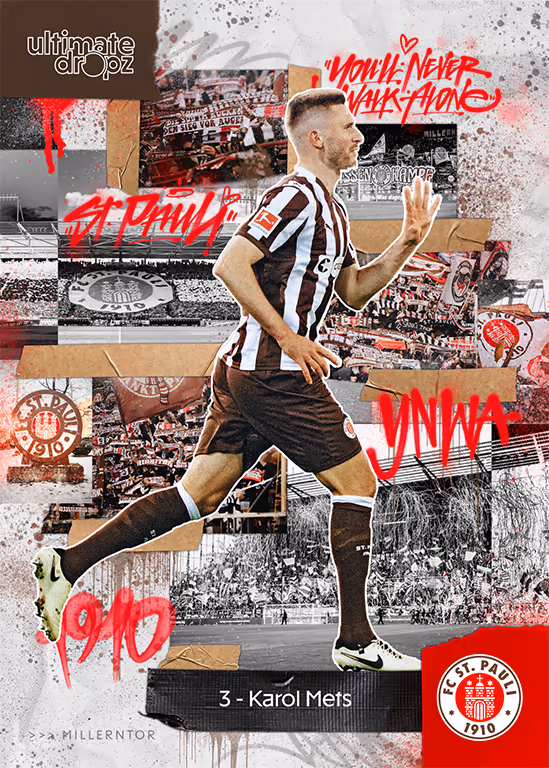 With a new team set, Ultimate Dropz accompanies FC St. Pauli through its tenth Bundesliga season, the second following promotion in 2024. Fans of the Kiezkickers can look forward not only to cards of current players but also to numerous club legends.