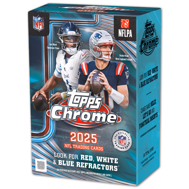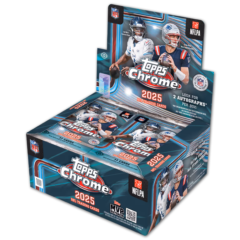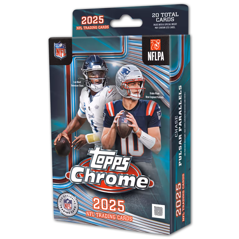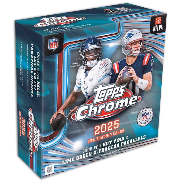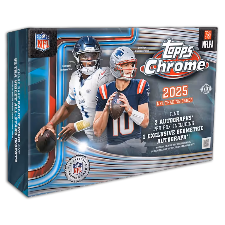 With the 2025 TOPPS Chrome NFL Football Cards, the NFL returns to Topps after more than a decade. Collectors can hunt for the stars, rookies, and legends from the 2025 season and the rich history of the NFL across 8 different products.