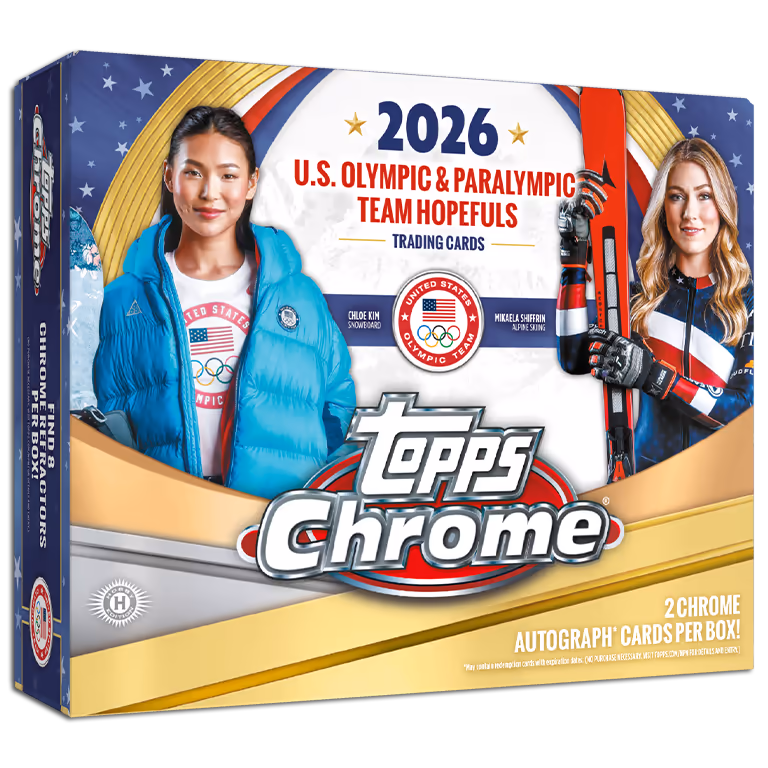 The 2026 TOPPS Chrome U.S. Winter Olympic & Paralympic Team Hopefuls Multisport Cards accompany Team USA on its journey to the Olympic & Paralympic Winter Games in Italy. Collectors can look forward to Autograph and Relic Cards from rising hopefuls, established stars, and Olympic icons.