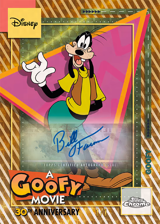 Additional categories include the autograph versions of the insert categories A Goofy Movie 30th Anniversary, Mickey Shorts, and Phineas and Ferb.