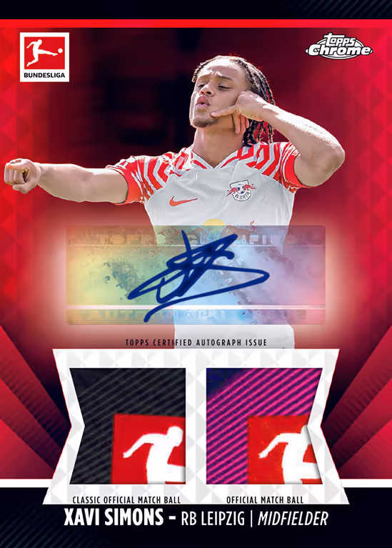 Die Ball Relic Cards gibt es als Derbystar Double Ball Autograph Relics auch in einer Variante mit Autogramm eines Bundesliga Stars. Auch diese sind exklusiv den Blaster Boxen vorbehalten.