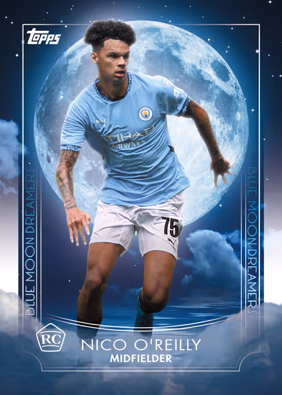 Der von Topps für die 2024-25 TOPPS Blue Moon Manchester City Soccer Cards angekündigte Veröffentlichungstermin ist Mittwoch, der 13. November 2024.
