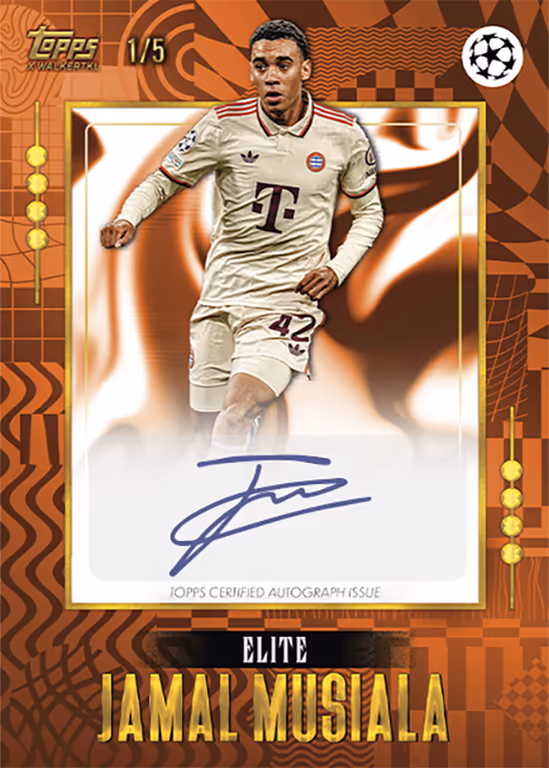 Topps aktualisiert die Gold Kollektion zu den europäischen Klubwettbewerben auf die Saison 2024/25 und packt erstmals 2 Autograph Cards von den Stars der Kollektion in einer Box.
