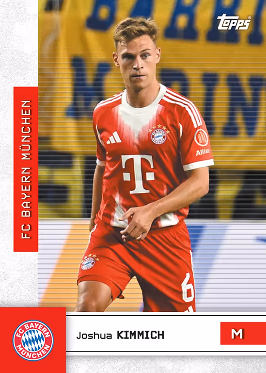 Das Base Set der 2025-26 TOPPS FC Bayern München Team Set Soccer Cards Kollektion umfasst 50 Cards und unterteilt sich in vier Subsets: Die beiden Kategorien First Team – mit Spielern aus dem aktuellen Kader – und Bona Fide Baller kennen Sammler bereits aus der Vorsaison. Neu hinzu kommen die Pitch Pursuits sowie die mit vollflächigen Fotomotiven ausgestatteten Collector’s Corner Cards.