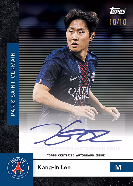 Dem letztjährigen Gewinner der UEFA Champions League ist das nächste Team Set von Topps gewidmet. Pro 2025-26 TOPPS Paris Saint-Germain Team Set Soccer Cards finden die Sammler und Fans von PSG 2 nummerierte Parallel Cards. Zudem besteht die Chance aus durchschnittlich jeder zweiten Box eine Autograph Card zu ziehen.