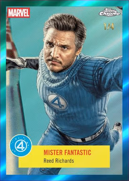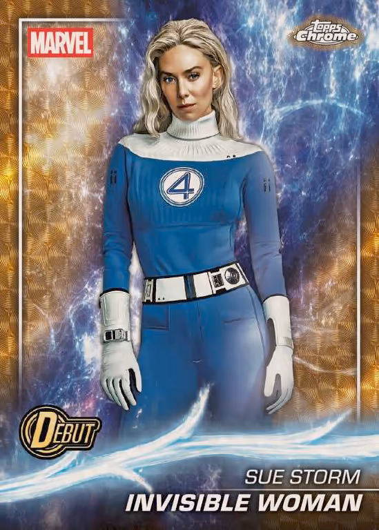 Eine Hommage an die neueste actiongeladene Marvel-Veröffentlichung und die Geschichte von Topps sind die The Fantastic Four First Steps. Sie zeigen, wie Mister Fantastic, Invisible Woman, Human Torch und The Thing im damaligen Topps Astronauts-Set von 1963 ausgesehen hätten. Von den Fantastic Four gibt es zudem eine spezielle blaue Parallelkarte, die auf /4 nummeriert ist.