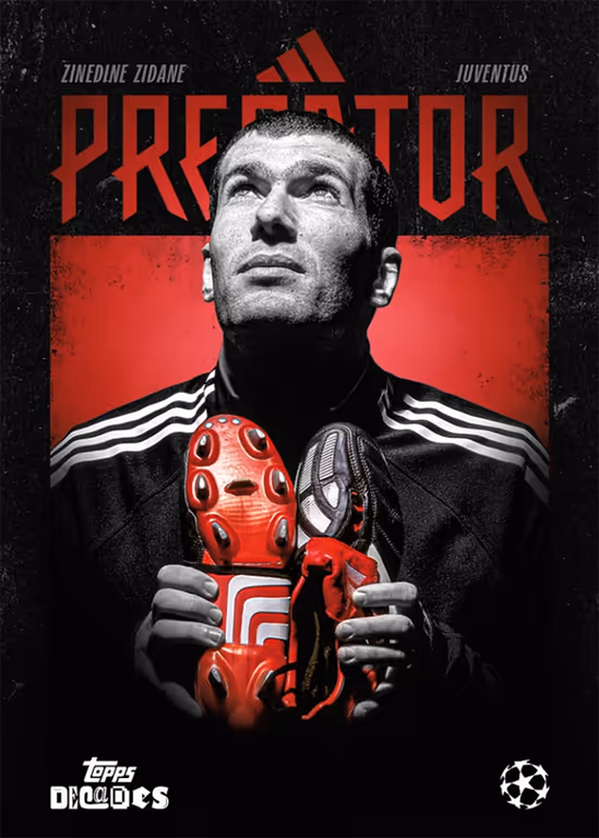 Zudem enthält die Decades 90’s Edition ein Subset zu den adidas Predator Fußballschuhen, einem Kultprodukt der 90er-Jahre. Hierfür hat man exklusive Werbefotografien aus der damaligen Zeit, mit Fußballgrößen wie Zinédine Zidane oder Rui Costa für die Trading Cards aufbereitet.