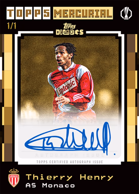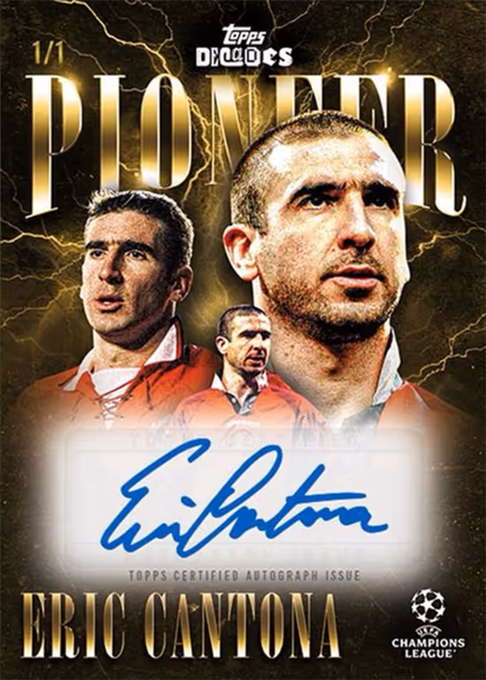Mit Decades startet Topps eine neue Reihe für alle Fans von Legenden früherer Tage. Den Auftakt machen die 1990er Jahre und bringen den Sammlern pro 2025 TOPPS Decades 1990’s Edition UEFA Club Competitions Soccer Cards Box 3 nummerierte Parallels und 1 Autograph Card von einigen der bedeutendsten Spielern aus dieser Zeit.