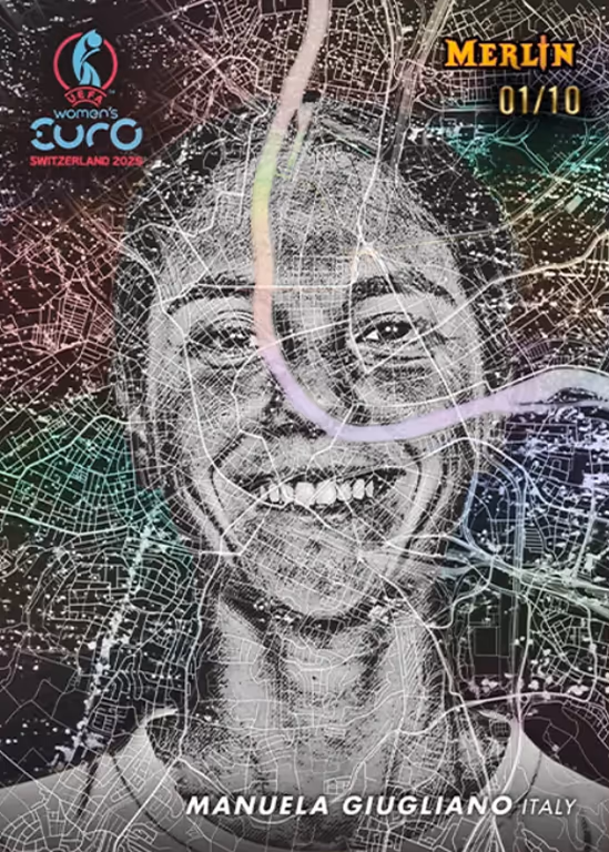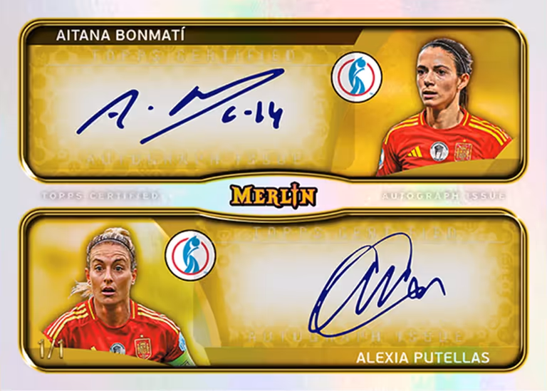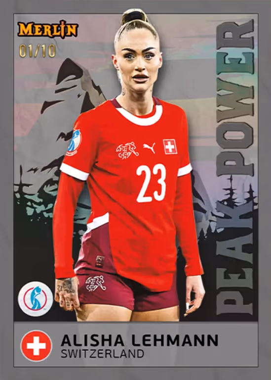 Kurz nach dem Beginn der Frauenfußball-Europameisterschaft in der Schweiz veröffentlicht Topps unter der Marke Merlin eine offizielle Cards Kollektion zum Turnier. In den Boxen der 2025 TOPPS Merlin UEFA Women’s Euro Soccer Cards finden Sammler 1 Autograph Card und 3 nummerierte Parallels.