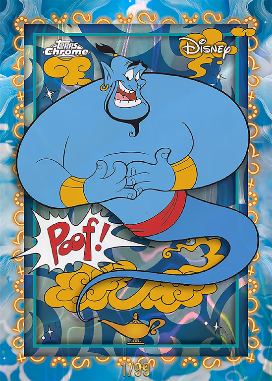 Die Besucher der New York Comic Con, die vom 9.- 12 Oktober in der amerikanischen Ostküstenmetropole stattfindet, können bereits drei Wochen vor dem offiziellen Release Termin einen ersten Blick auf die Cards werfen. Am Stand von Topps sind die nur für die Comic Con produzierten und exklusiv dort erhältlichen 2025 TOPPS Disney Mint NYCC Boxen erhältlich. Diese bieten die Chance auf eine der produktexklusiven und maximal zu /99 nummerierten Magic Lamp Inserts mit Genie aus dem Disney Film Aladdin.