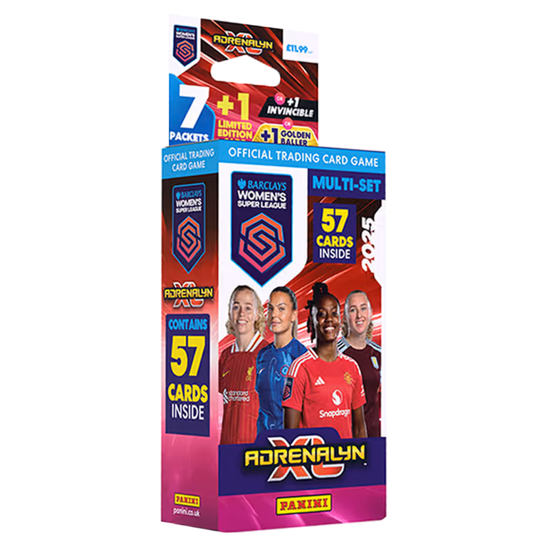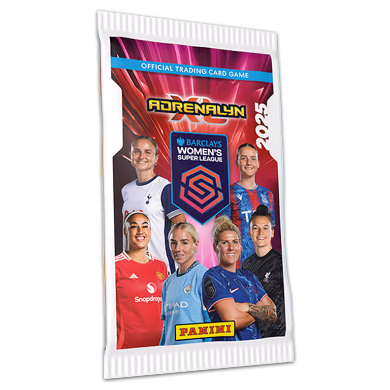 Die Booster Packs der Panini Adrenalyn XL Women’s Super League 2025 Kollektion sind für £1.80 erhältlich und enthalten 8 Trading Cards. Den idealen Einstieg in die Kollektion bietet das Starterpack, das neben der Sammelmappe zur geschützten Aufbewahrung der Cards ein Sammlermagazin mit zahlreichen Infos, ein 2-Spieler Gameboard und bereits die ersten 26 Cards enthält.