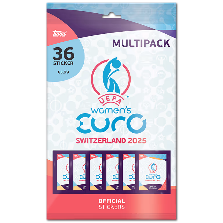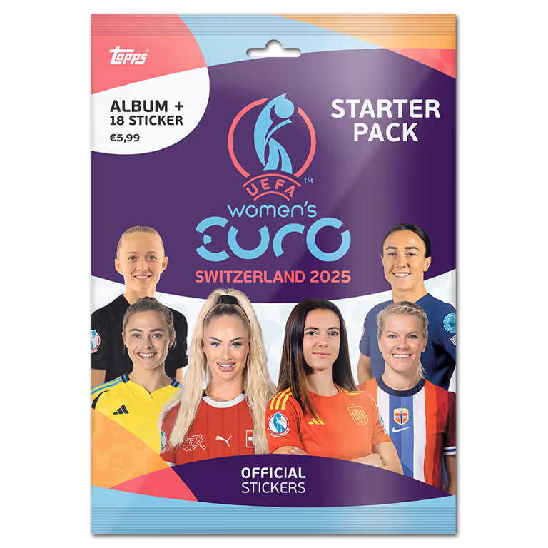 Erstmals veröffentlicht Topps Sticker zu einer Frauenfußball-Europmeisterschaft und begleitet mit den TOPPS UEFA Women’s Euro 2025 Stickern als offizielle Stickerkollektion das Turnier im Sommer 2025 in der Schweiz.
