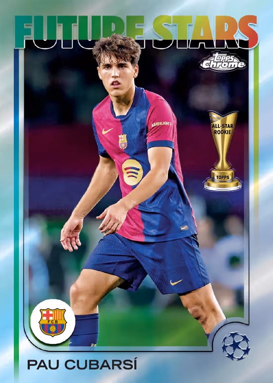 La colección 2024-25 TOPPS Chrome UEFA Club Competitions Soccer Cards incluye un set base de 200 cartas, que reúne tanto a estrellas consagradas como a Future Stars y Rookies.