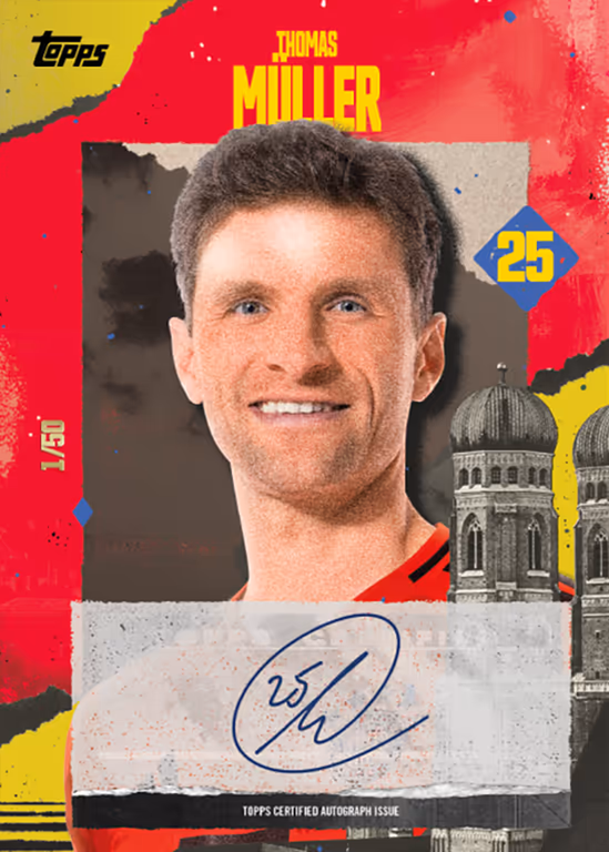 Uno de los puntos destacados del Topps FC Bayern München Team Set son las My Club Autograph Relic Cards, con piezas de camisetas match-worn o player-worn y una firma. Cada jugador tiene una One-of-One Card que aparece solo una vez en toda la colección.