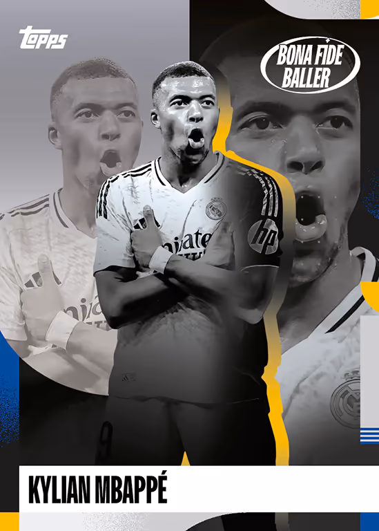 El Base Set de la colección Topps Real Madrid Team Set 2024/25 consta de 50 cartas. La mitad está dedicada a jugadores de los equipos masculino y femenino actuales, y la otra mitad se reparte en tres subgrupos más pequeños. Flamenco Flare celebra a los mejores artistas sobre el césped. Bookends rinde homenaje a los Premierentore de grandes leyendas del Real y las Bona Fide Baller Cards muestran las estrellas emergentes y del pasado del club.