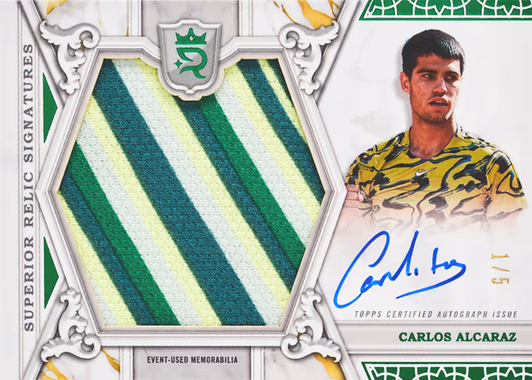 Con las 2024 Topps Royalty Collection Tennis Cards, Topps lanza un nuevo set de gama alta para todos los aficionados al tenis. Por cada Hobby Box, los coleccionistas podrán encontrar 6 Autograph o Autograph Relic Cards de gran calidad, además de 2 Relic Cards adicionales.