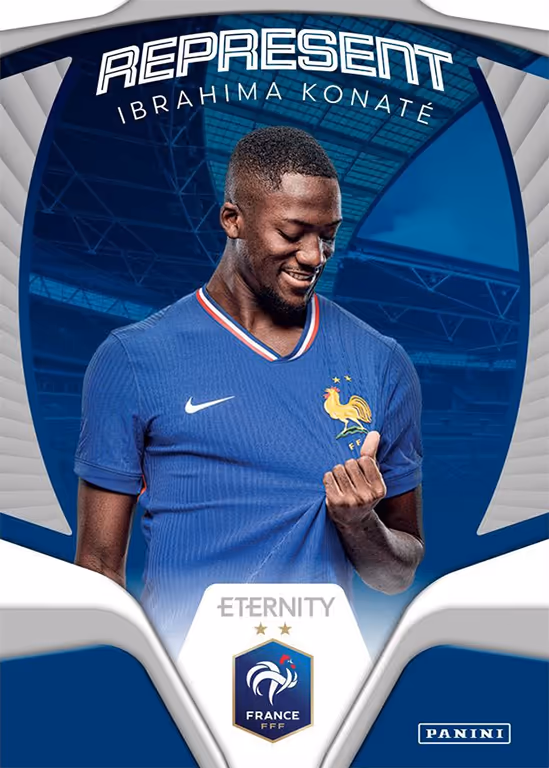 Las 2025-26 PANINI Eternity Bleus Soccer Cards están dedicadas a la selección masculina de Francia y fueron presentadas por primera vez a los aficionados en el estadio y a los espectadores durante el partido de clasificación para el Mundial entre Francia y Ucrania. Además de numerosas actividades alrededor del encuentro, la alineación de Francia también se mostró en las pantallas gigantes ilustrada con algunas de las nuevas cartas.