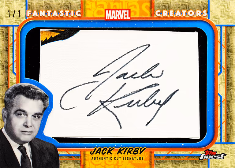 Uno de los grandes puntos destacados de la colección son las FANTASTIC CREATORS CUT SIGNATURE RELICS con firmas recortadas integradas de Jack Kirby y Stan Lee, los dos creadores cuyas ideas y trabajo artístico no solo dieron forma a los Fantastic Four, sino a todo el universo Marvel.