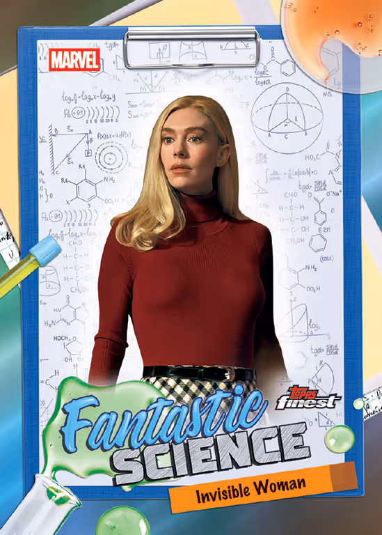 - FANTASTIC SCIENCE (1 carta por case) presenta personajes de The Fantastic Four: First Steps en un diseño lúdico que captura el estilo retro del programa científico del film