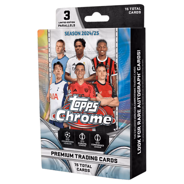 2024-25 TOPPS Chrome UEFA Club Competitions Soccer Cards Hanger Box