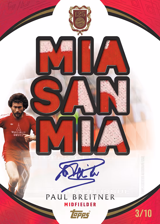Enfin, les Mia san Mia Autograph Relics combinent autographe et relic dans une seule carte de collection.