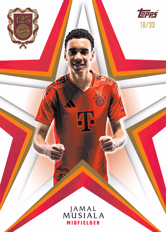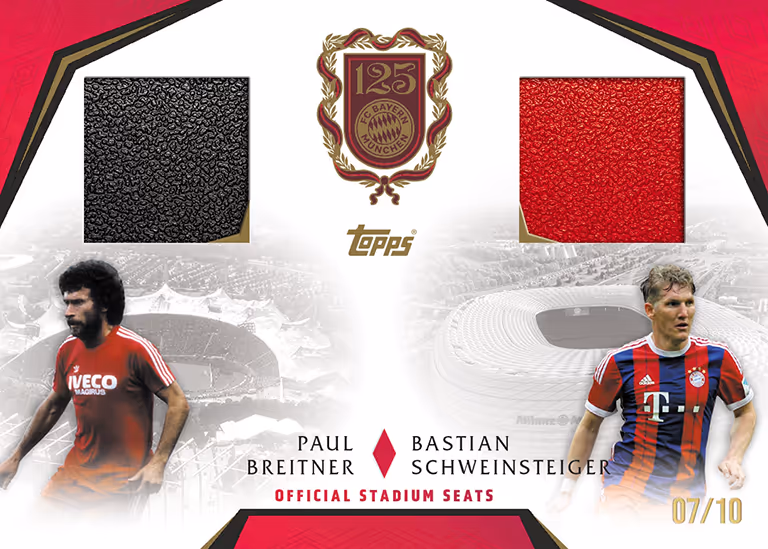Pour le 125e anniversaire du FC Bayern Munich, Topps publie une collection exclusive de cartes à collectionner de haute qualité, consacrée aux joueurs actuels et aux légendes du club le plus titré d’Allemagne. Les fans trouveront dans chaque boîte des 2024-25 TOPPS FC Bayern München 125 Years Anniversary Soccer Cards 4 Autograph Cards et 1 Relic Card.