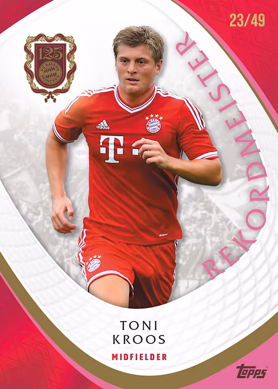 Le contenu de la 2024-25 TOPPS FC Bayern München 125 Years Anniversary Soccer Cards checklist est basé sur les informations fournies par le fabricant, complété par nos propres constatations et des contributions de la communauté vérifiées. Les images d’aperçu fournies par les fabricants peuvent différer du design final.