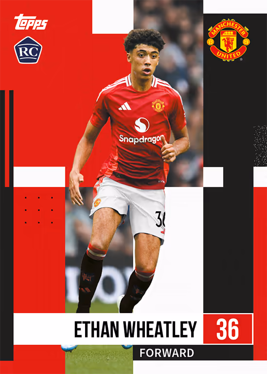 Le base set de la collection Manchester United Team Set 2024/25 comprend 50 cartes, environ pour moitié consacrées aux joueurs de l’effectif actuel et pour moitié réparties entre trois sous-sets plus petits, où figurent également des joueuses de l’équipe féminine de United. Theatre of Dreams présente des légendes passées et actuelles du club qui ont conquis les supporters du monde entier. Consequential réunit certains des buteurs les plus importants des Red Devils et Bona Fide Ballers met en avant les talents émergents et anciens du club.