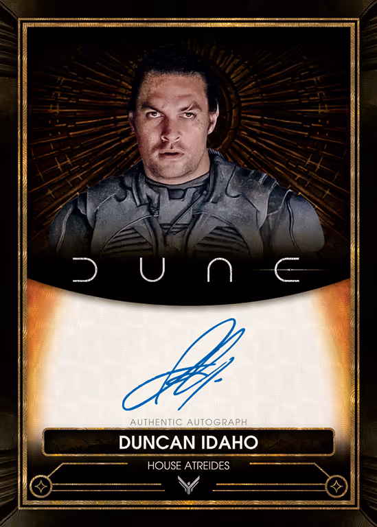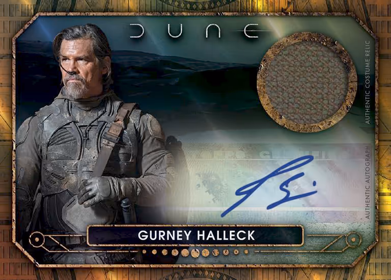 Les Dune Authentic Relic Autograph Cards associent des morceaux de costumes à des autographes, créant ainsi des pièces de collection exceptionnelles.